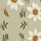 Schattige bloemontwerp met witte bloemen op een warme, beige achtergrond met bosgroene loof takjes. Retro, country en folky patroon, en de neutrale kleuren zorgen ervoor dat het met elk kleurenpalet zal gaan.