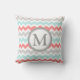 De elegante en moderne perzik, het turkooise lichtblauwe, grijze en witte van het de strepenpatroon van chevronzigzag decoratieve de douanemonogram werpen hoofdkussen. Volledig klantgericht, voeg uw eigen initiaal voor een echt uniek punt van het huisdecor toe.
