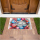 Deze creatieve welkomstdeurmat heeft een illustratie van een decoratieve kerstvakantiekrans gemaakt van prachtige bloemen. Aarzel niet om alle beschikbare opties naar wens aan te passen.