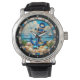 Nautical-themed wall clock with vibrant beach scenery, featuring an anchor, seashells, and sailing boats, accentuating marine aesthetics in home decor. Ideal for adding seaside vibes to interiors.