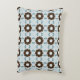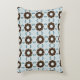 A decorative pillow featuring a symmetrical geometric pattern with blue, white, and brown hues shown from the front and back on a gray background.