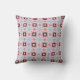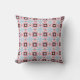 A decorative pillow featuring a symmetrical geometric pattern with blue, white, and brown hues shown from the front and back on a gray background.
