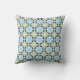 A decorative pillow featuring a symmetrical geometric pattern with blue, white, and brown hues shown from the front and back on a gray background.
