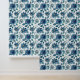 Give your walls an instant makeover with this luxurious floral pattern. It features rich, watercolor-inspired roses in navy blue and shades of blue-gray, interwoven with dark green leaves against a crisp white background.