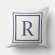 Deep Navy And White Square Border Monogram Kussen