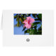 Deze kaart met een diepe gele hibiscus met een witte keel is perfect om zich bij vele gelegenheden te personaliseren. Op de achtergrond bevindt zich een tropische tuin, gekroond door een kokospalm. Op de achterkant van de kaart is een prachtige roze hibiscus.