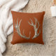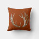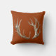 Rust sinaasappel, hertengeweien, decoratief gooien kussen. Donkere oranje kleur met een paar geweien aan beide zijden, voor de hertenjager, de natuur liefhebber of het bos thuis.