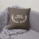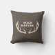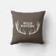 Een bruin kussen met een hertengewei en een volledig aanpasbare tekst: "Wilde Natuur" in rustieke stijl! Voeg een vleugje wildlife natuur toe aan uw huisdecoratie!