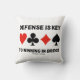 Laat je wrange defensieve bridgespeler houding zien met dit kussen met worp met de vier kaartpakken samen met het volgende gezegde van bridge truism: "Defense Is Key To Winning In Bridge". Memorabele gooi kussen voor elke bridgespeler die houdt van het verdedigen van een bridgehand!