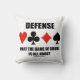 Laat je wry bridge / duplicate bridge attitude zien met dit werpkussen met de vier kaartpakken samen met het volgende bridge truism-gezegde: "Defence What The Game Of Bridge Is All About".
