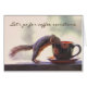 Een foto van een eekhoorn met zijn hoofd in een koffiekop op een schotel. Je kunt dit schattige eekhoorntje afbeelding aanpassen door je eigen tekst toe te voegen in de stijl en kleur van je keuze. Foto's worden geleverd op een groot aantal verschillende aanpasbare producten.