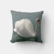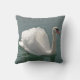 Een witte zwaan in een trotse zwemhouding voor donkergrijs water is het Ontwerp van deze Amerikaanse MoJo-gooiende kussen.