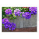 Dit afbeelding bevat opvallende rode en paarse bloemen die over de zijkant van een wijnvat lopen.