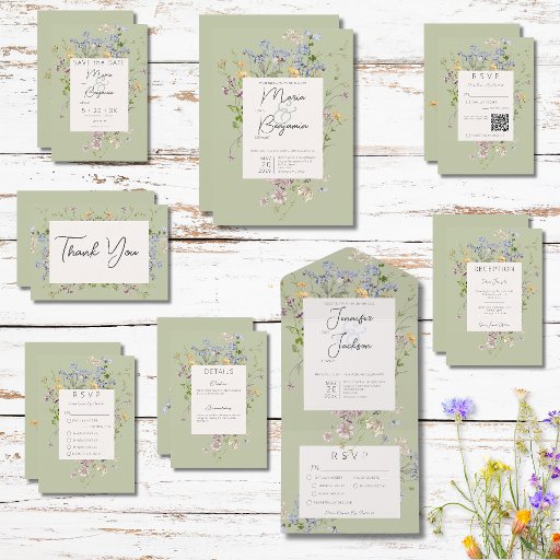 Delicate Boho Wildflowers Green Wedding SuiteOntworpen door Kathe Santillo