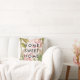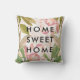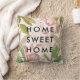 Deze stijlvolle kussen zijn voorzien van bloemen met een donkerroze waterverf en trendy groene bladeren, met de woorden "thuiszoet thuis" in de moderne zwarte tekst. We hebben kunst van Creëer the Cut gebruikt.