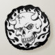 Een handgetekende duivelse schedel omkranst in het vuur van de hel.