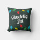 Een kerst decor kussen in het Deens. Er staat "Glædelig Jul" om een vrolijk kerstfeest te wensen.