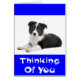 Deze schattige Border Collie is er klaar voor om je vrienden en familie te laten weten hoe speciaal ze zijn. Dit charmante denken van het wenskaart van U bevat een portret van een zwarte en witte marionettenhond uit de Rand die tegen een scherpe witte achtergrond rust met een levendige blauwe rand.