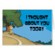 Een cartoon-afbeelding van een meisje dat onder een boom op een heuvel zit met de woorden die ik vandaag over jou dacht. De binnenkant zegt dat het zo mooi was dat ik het morgen weer ga doen.