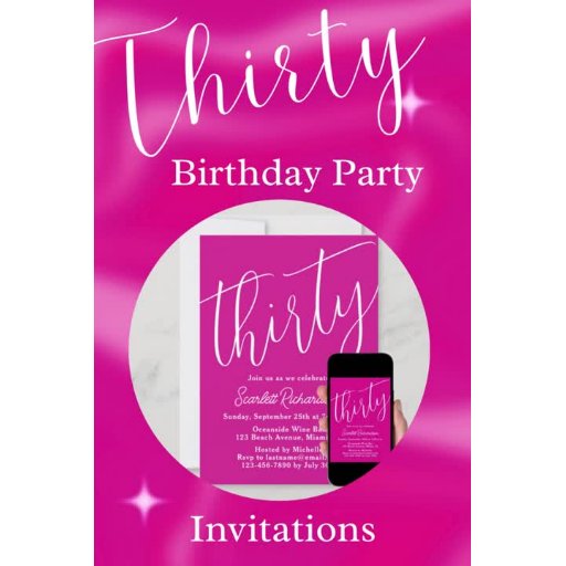 Simply Modern 30th Birthday Party Invitation Dark Pink Personaliseer deze elegante Dark Pink verjaardagsfeestuitnodiging met de naam van de persoon die een zeer speciale dag in hun leven viert en pas alle details van de verjaardagsfeestviering aan. Een 30e verjaardag is een bijzondere mijlpaal om te vieren. Markeer de gelegenheid door een feestje te creëren en uitnodigingen te sturen naar alle bijzondere mensen in hun leven. Shop onze winkel voor geschenken die u kunt personaliseren met hetzelfde elegante ontwerp op verjaardagscadeaus en verjaardagsfeestdecoraties.