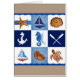 Originele waterverf geschilderd ontwerp door Sandra Gale, met blokken van zeemijptekeningen zoals stervis, anker, schip, schildpad en schelpen. Geweldig ontwerp voor de zomer, strandhuizen, bungalows of iedereen die van het strand, de oceaan of de vis houdt.
