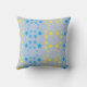 Een omkeerbaar ontworpen kussen met blauwe en gele sterren. De lichtblauwe achtergrond kan worden veranderd in elke kleur die bij uw decor past.
