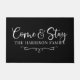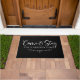 Een moderne kalligrafie deurmat waardoor je je echt welkom voelt. Een geweldig cadeau voor pasgetrouwden of nieuwe huiseigenaren, onze aangepaste kom en verblijf deurmat in elegante duurzame grijze functies "Kom en blijf" in moderne, elegante handgeschreven kalligrafie script. Personaliseer met uw familienaam in klassieke witte letters. Ontworpen voor u door Blackberry Boulevard.