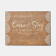 Een moderne kalligrafische deur die je echt welkom maakt. Een groot geschenk voor nieuwigheden of nieuwe huiseigenaars, onze douane komt en blijft slaapbij in elegante burlap en laat functies "Kom en blijf" in een modern, elegant handgeschreven kalligrafiekscript zien. Geef uw familienaam een persoonlijk tintje in de klassieke vorm van witte letters. Ontworpen voor jou door Blackberry Boulevard.
