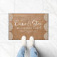 Een moderne kalligrafische deur die je echt welkom maakt. Een groot geschenk voor nieuwigheden of nieuwe huiseigenaars, onze douane komt en blijft slaapbij in elegante burlap en laat functies "Kom en blijf" in een modern, elegant handgeschreven kalligrafiekscript zien. Geef uw familienaam een persoonlijk tintje in de klassieke vorm van witte letters. Ontworpen voor jou door Blackberry Boulevard.