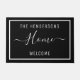 Welkom familie en vrienden bij je thuis met dit elegante en stijlvolle zwarte doormat. Pas het aan met jouw naam en verander de woorden als u wilt.