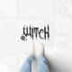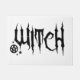 Een tekening van een pentakel en het woord "heks" in een griezelige lettersoort.