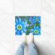 Deurmat met Blauw Groen Bloemen Abstracte Kunst