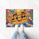 Een cartoon deurmat met een grote glimlach en muzieknoten voor ogen danst met vreugde naast een gitaar, drums en een trompet. Welkom uw dierbaren in stijl met deze - Amusante kleurrijke muzieknoten Design For Your Feet Before Enter Deurmat.