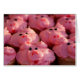 Een bord roze stekelkoekjes in de zon op het verjaardagsfeestje van een klein meisje.