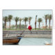 Wenskaart van een traditionele boot of "dhow" in de Qatarese hoofdstad Doha. Volledig aanpasbare kaart.