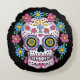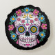 De suikerschedel van Dia de los Muertos (Dag van de Dood) wordt omgeven door kleurrijke bloemen.
