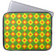 Geometrische vormgeving met diamantvormen, in oranje, groen en geel, door Ron Trickett.