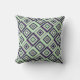 Geometrische gooikussens met een diamantpatroon in donker paars, grijs en lichtgroen. Voor een kleine verscheidenheid, heeft de achterkant een kleinere drukgrootte van het zelfde patroon.