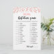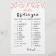 Koop dit spel en geniet van hoge kwaliteit Animal Gestation spelkaart voor uw evenement! Hoe lang is elk dier zwanger? Baby shower Activiteiten! Roos gouden confetti ontwerp. ANTWOORDEN: Herten - D, Kangoeroe - K, Konijn - J, Beer - A, Kameel - L, Fox - E, Puma - I, Dolfijn - C, Lama - H, Geit - G, Olifant - F, Kat - B