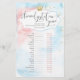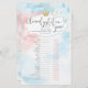 Deze "Animal Gesting"-baby shower voor een toekomstige moeder heeft een modern script op een roze en blauwe achtergrond van de waterverf, die perfect is voor een geslacht, laat baby shower zien! Achterkant met de antwoordsleutel!