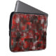 Digitale mozaïek van vierkantjes in rode tinten en laptop sleeve