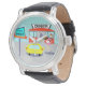Bedien iets speciaals met de Diner Watch uit 1950. Het tekenontwerp van de cartoon is voorzien van een rood baksteengebouw met blauwe vensters, grijze dubbele deuren en een wit bord dat zegt: "Diner" op het dak. Op de parkeerplaats staat een tweede teken op een stok. Het teken heeft een turquoise achtergrond en een opvlammende rode pijl die de weg wijst naar "Don's Diner". Het bord heeft zijn werk gedaan omdat er een felgele auto is met vinnen naast hem geparkeerd. Hoewel we ze niet kunnen zien, moeten de passagiers van de auto hun lippen inslaan. Een schattige, jonge carhop rolt haar weg naar de auto. Haar bruine haar zit in een staart. Ze draagt een kort, roze uniform met zwarte trim en een wit pron. Op een evenwichtige manier draagt de carhop een zwart bakje met een gigantische hamburger en een verfrissende, ouderwetse glazen fles soda. De achtergrond achter het diner is blauwgroen met lichtblauwe wolken en de silhouetten van cedar-bomen.