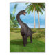 3D digitale weergave van een dinosaurus Brachiosaurus op de achtergrond van blauwe lucht en groene palmbomen
