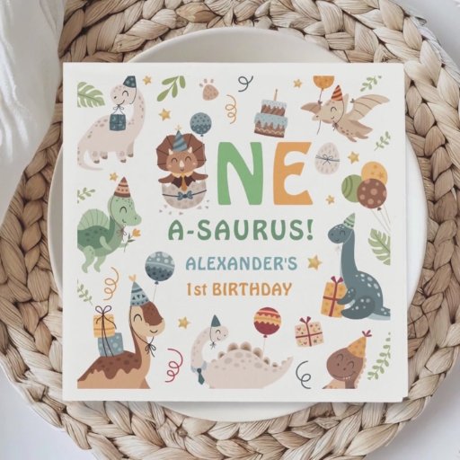 Dinosaur One A-Saurus Boy 1st Birthday Party Kaart