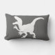Dinosaur-kussen in grijs met een witte raptor-silhouet.