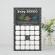 Baby showers speelplaatkaart. Chalkboard Dinosaurussen Baby shower met schattige baby-kaaldinosaurussen in kleuren blauw, groen en bruin/tan. Komt overeen met het baby shower-uitnodigingsontwerp van MonkeyHutDesign #177. Geweldig spel om de cadeauopening op te wekken. Voordat de moeder haar geschenken begint af te pakken, moeten de gasten elk van de vierkantjes invullen met items waarvan ze denken dat de mama ze zal ontvangen. Wanneer de moeder-te-zijn haar giften opent, zullen de gasten van de kwadraten met een "x"merken wanneer zij een gelijke vinden. De eerste gast die 5 oversteekt, omhoog en omlaag of diagonaal naar BINGO schreeuwt!!!!