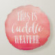 Whimsical kussen met moderne kalligrafie en roze en koraal waterverf achtergrond.
