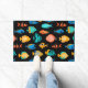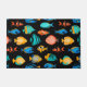 Diverse kleurrijke tropische visbeelden op zwarte achtergrond, naadloos herhalend patroon