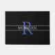 Personaliseer deze trendy zwarte deurmat met Blue Monogram en White Name. Een eenvoudig, maar elegant ontwerp voor hem of haar met 2 grijze strepen.