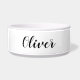 Deze huiskom kenmerkt een duidelijke witte achtergrond en zwarte manuscripttekst en een gepersonaliseerde huisdiernaam. Met onze DIY-sjabloon kunt u eenvoudig uw eigen aangepaste kom maken. Voeg een naam toe. Initialen. Een monogram. U kunt zelfs uw eigen doopvont, doopvontkleur kiezen en een achtergrondkleur toevoegen, ook. Dus, ga je gang, wees creatief en doe gewoon rustig!